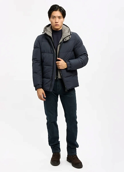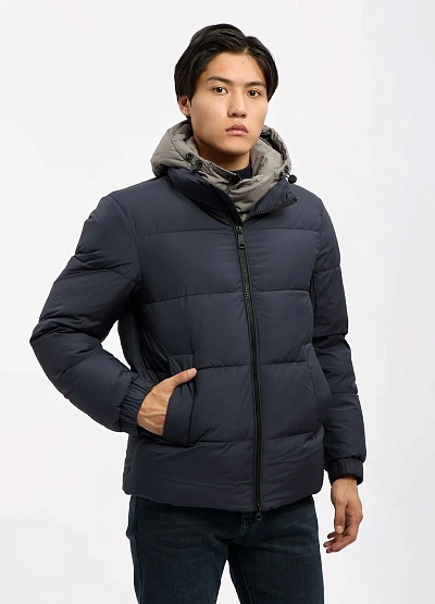 — Цвет: тёмно-синий с серой подкладкой капюшона