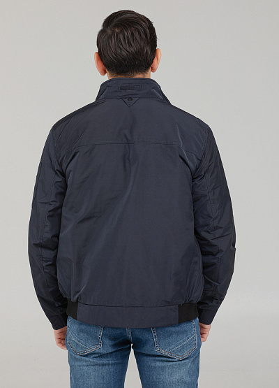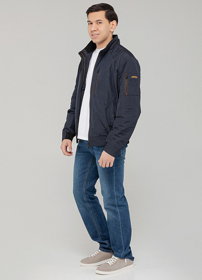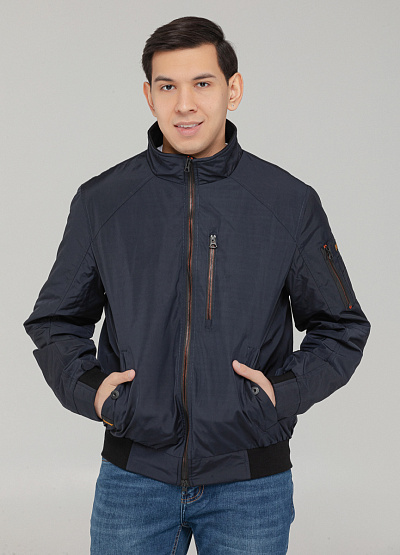 • Мужская тёмно-синяя куртка-бомбер — универсальный выбор в прохладную погоду с современным городским акцентом.