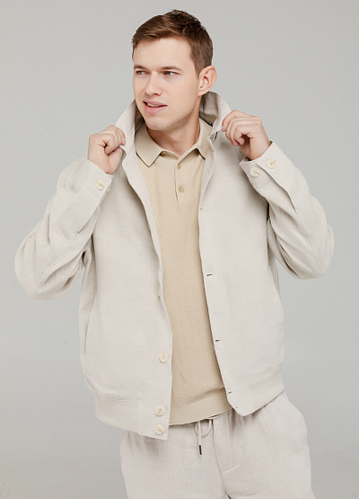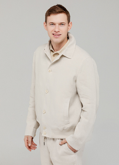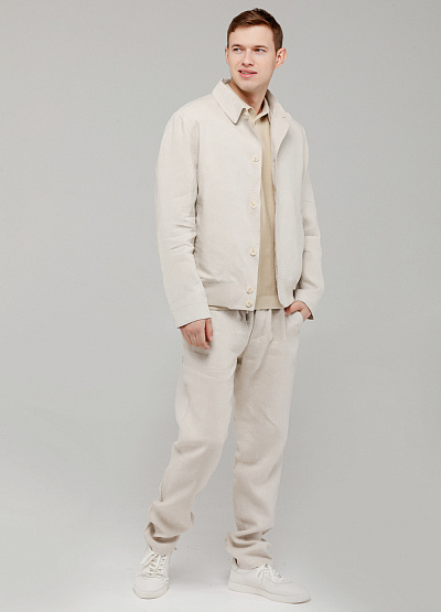 • Мужская льняная куртка в молочном оттенке — воплощение легкости, стиля и натурального комфорта.