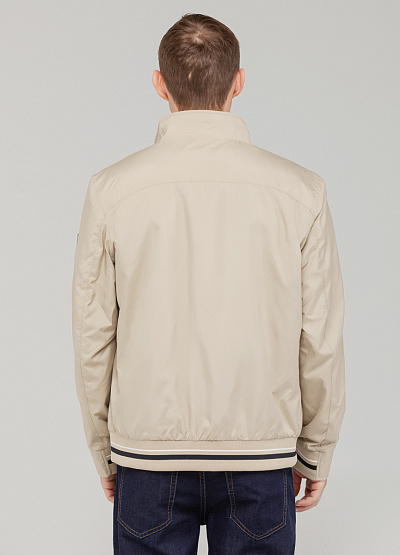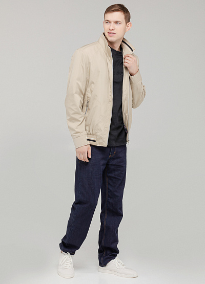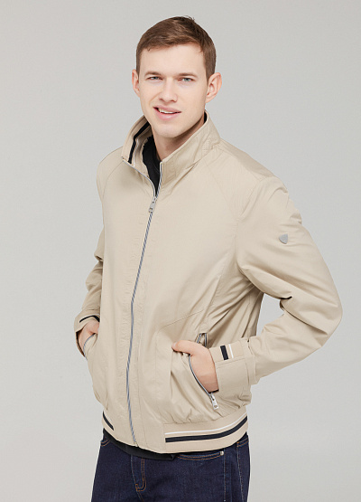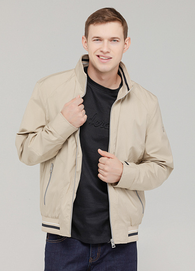 • Мужская куртка-бомбер светло-бежевого цвета — стильная и практичная вещь для межсезонья.
