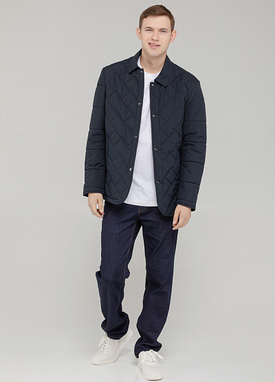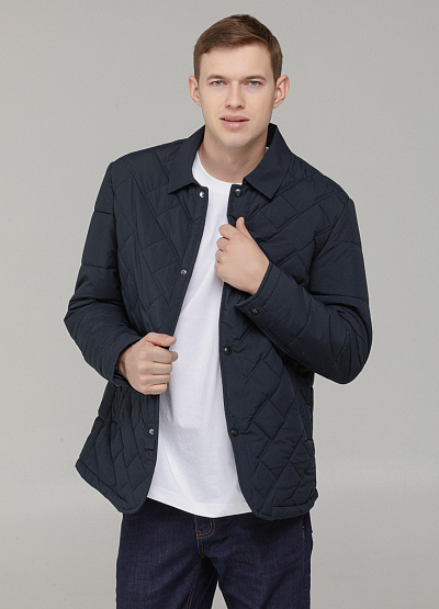 • Мужская стёганая куртка тёмно-синего цвета — универсальный элемент демисезонного гардероба в современном исполнении.