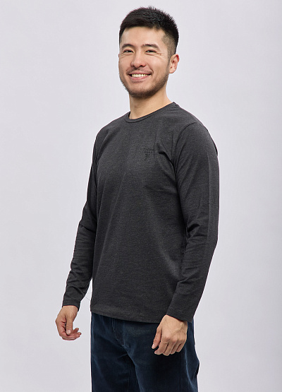 • Мужской лонгслив в универсальном тёмно-сером цвете — идеальная базовая вещь для повседневного гардероба. Модель выполнена из мягкого хлопкового трикотажа, который приятен к телу и обеспечивает комфорт на протяжении всего дня. Лаконичный прямой крой подчёркивает естественный силуэт и не сковывает движений, а ненавязчивый брендовый логотип добавляет стильный акцент.