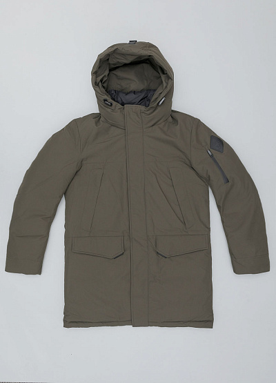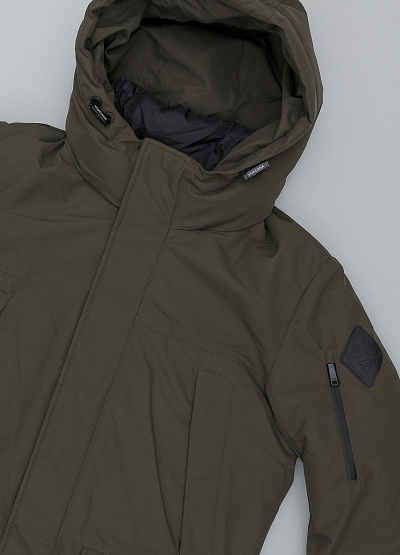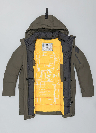 • Мужская парка от бренда Vivacana. Модель прямого кроя. Капюшон на кулиске. Застежка на молнии и кнопках. Логотип на рукаве.