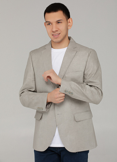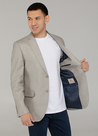 • Мужской пиджак светло-бежевого цвета — базовая вещь для тёплого сезона