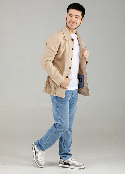 • Мужской пиджак бежевого цвета от бренда Thomas Graf. Классическая форма с длинными рукавами и прямым кроем подходит для любого случая, а однотонный цвет добавит изюминку и яркость в ваш имидж. Отложной воротник, застежка на пуговицы придает удобство при надевании. Модный силуэт подчеркнет достоинства фигуры и гармонично впишется в любой образ.