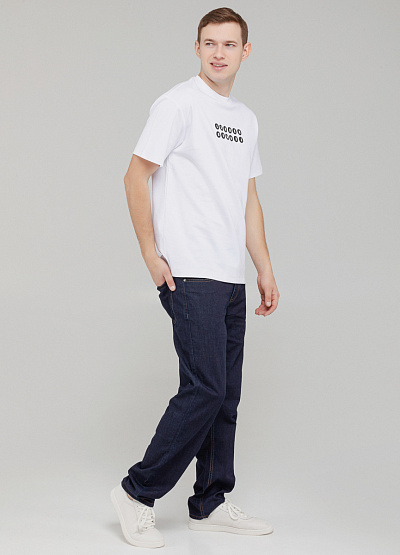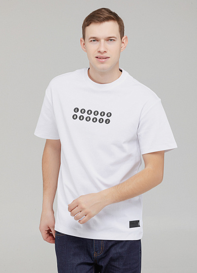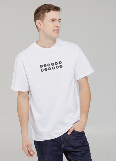 Мужское поло в белом цвете с чёрным принтом — простой и выразительный акцент для базового гардероба.