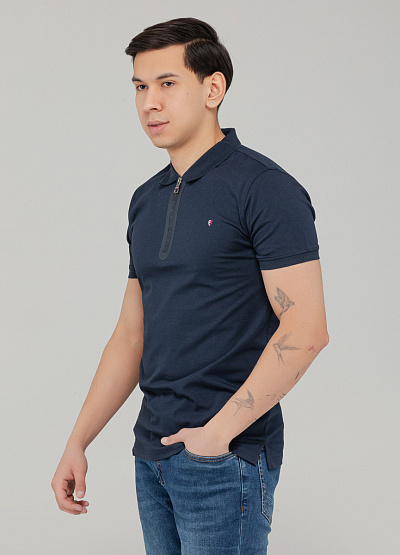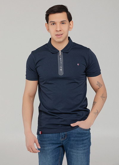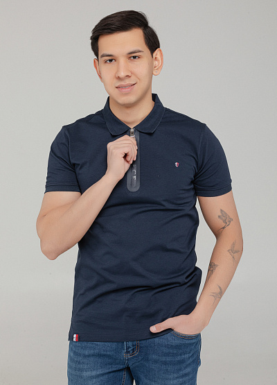 Мужское поло тёмно-синего цвета с молнией — современный взгляд на классический стиль, сочетающий лаконичность и акцентные детали.