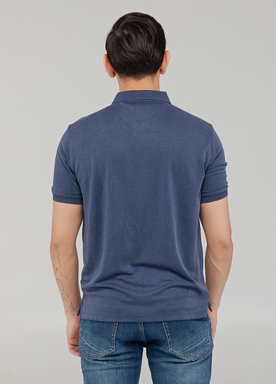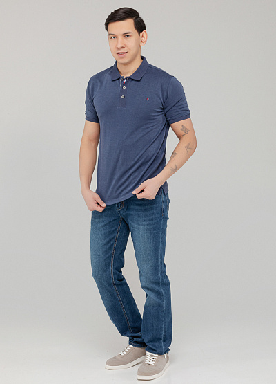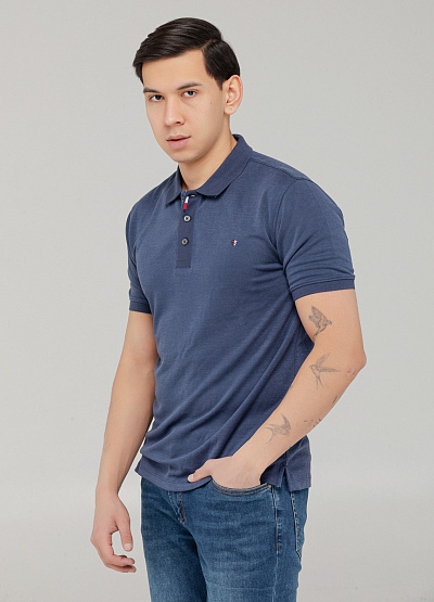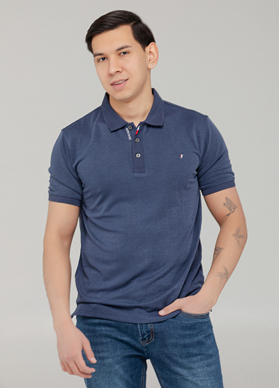 Мужское поло в приглушённо-синем оттенке — универсальный вариант для стильного повседневного образа.