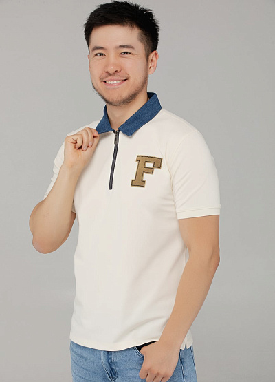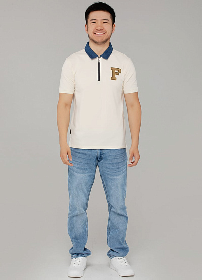 • Молочное поло с воротником из денима и вышивкой "F" — лёгкий и стильный выбор для тех, кто ценит детали. Комбинация мягкой ткани и выразительных акцентов делает эту модель универсальной для повседневного и smart casual гардероба.