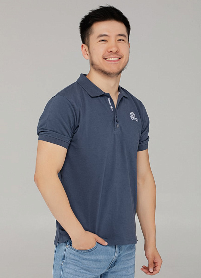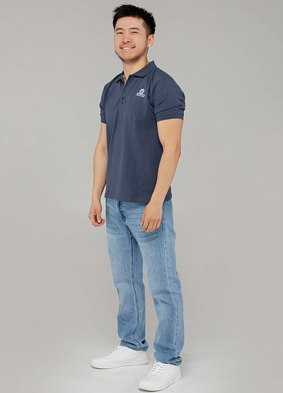 • Мужское поло тёмно-синего цвета — элегантная альтернатива классической футболке. Модель украшена контрастной вышивкой на груди и аккуратной надписью под воротником. Цвет придаёт глубину образу и легко комбинируется с денимом, брюками или шортами.