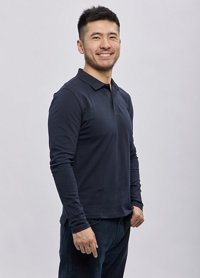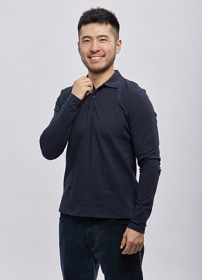 • Мужское поло с длинным рукавом в глубокем тёмно-синем цвете — стильная и универсальная база для повседневных образов. Модель выполнена из мягкого трикотажа, который комфортно прилегает к телу и обеспечивает свободу движений. Классический воротник и аккуратная застёжка на пуговицы создают строгий и ухоженный вид, а лаконичный дизайн делает изделие подходящим как для офиса, так и для отдыха.