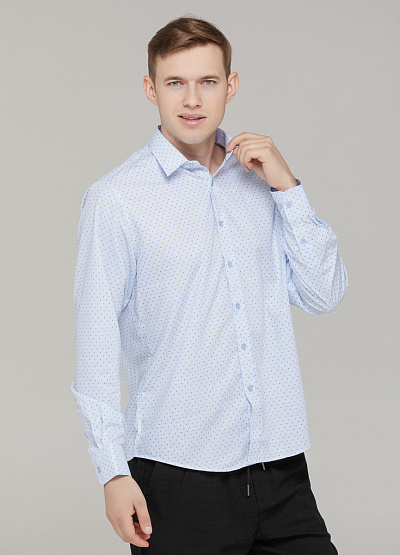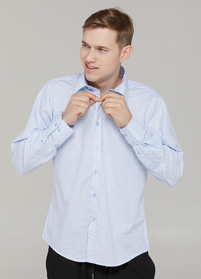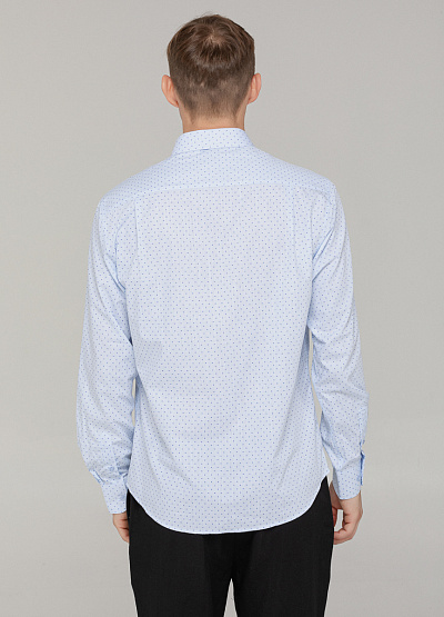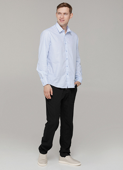 • Эта стильная мужская рубашка в светло-голубом цвете – идеальный выбор для теплых дней. Легкая, дышащая ткань и свободный крой обеспечивают комфорт в течение всего дня.