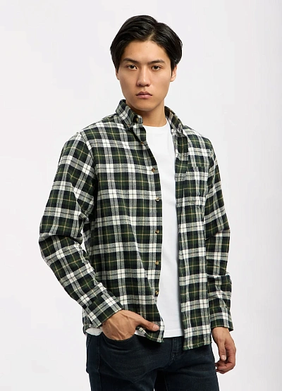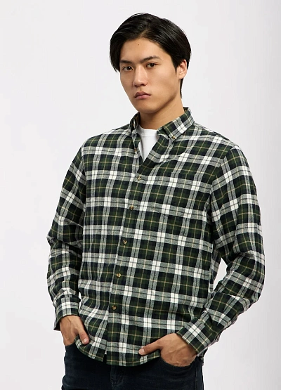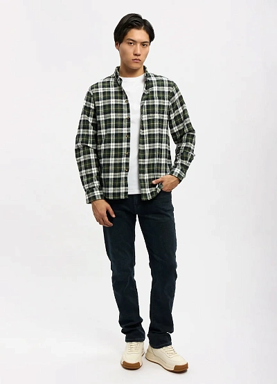 • Мужская рубашка в клетку в спокойной зелёно-белой цветовой гамме — универсальная модель для повседневного гардероба. Классический прямой крой обеспечивает комфортную посадку и свободу движений, а мягкая ткань делает рубашку удобной для ежедневной носки. Модель легко вписывается в casual-образы и хорошо смотрится как самостоятельный элемент, так и в многослойных сочетаниях с футболкой.