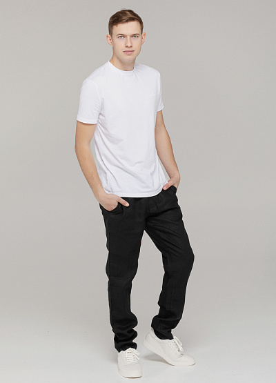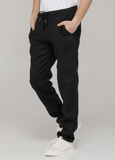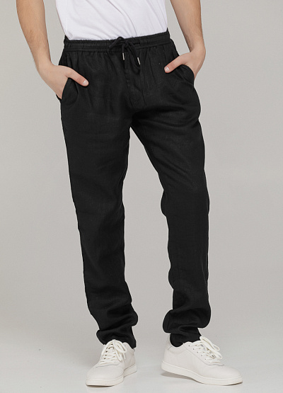 Элегантные и универсальные мужские брюки черного цвета из льна – идеальный выбор как для повседневного стиля, так и для деловых образов.