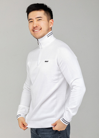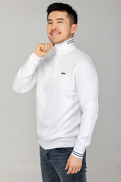 • Мужской свитер из хлопка от бренда Thomas Graf. Модель прямого кроя. Воротник-стойка с застежкой на молнию. Контрастные полоски на воротнике. Эластичные манжеты. Логотип сбоку.