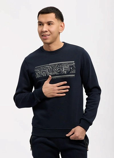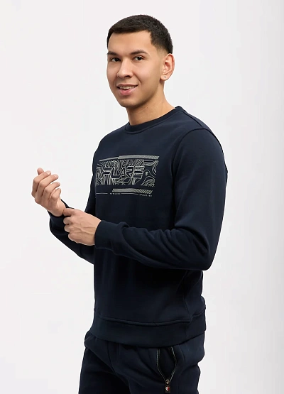 • Мужской свитшот тёмно-синего цвета — стильный и комфортный элемент повседневного гардероба. Модель выполнена в лаконичном дизайне с аккуратным графическим принтом на груди, который добавляет образу динамичности и современного характера. Мягкий трикотаж приятен к телу и хорошо сохраняет форму, обеспечивая комфорт в течение всего дня.