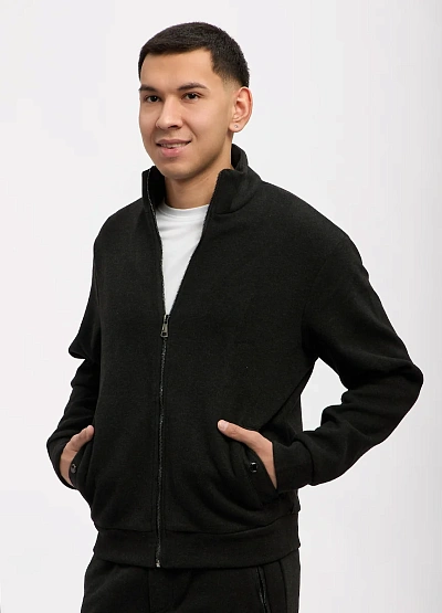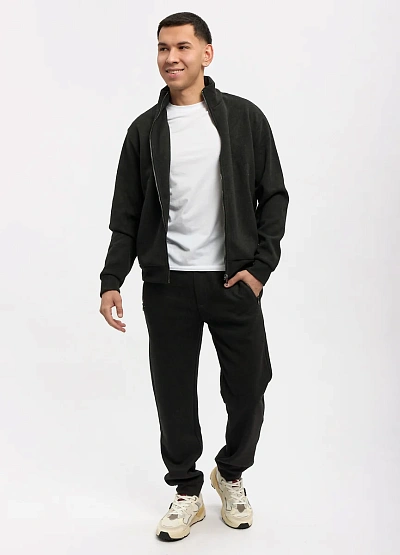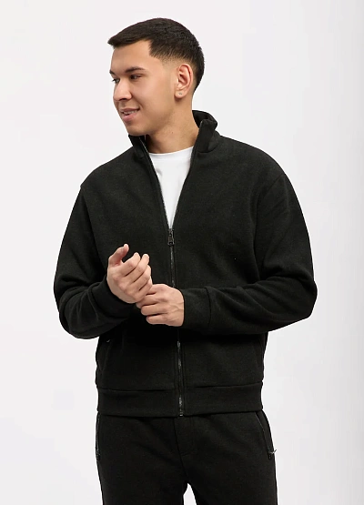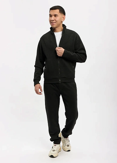 • Мужская спортивная куртка на молнии в чёрном цвете — универсальная база для современного гардероба. Минималистичный дизайн делает модель актуальной вне сезонов, а продуманный крой обеспечивает комфорт и аккуратную посадку. Куртка легко сочетается с брюками из комплекта, джинсами или casual-образами, создавая сдержанный и уверенный стиль на каждый день.