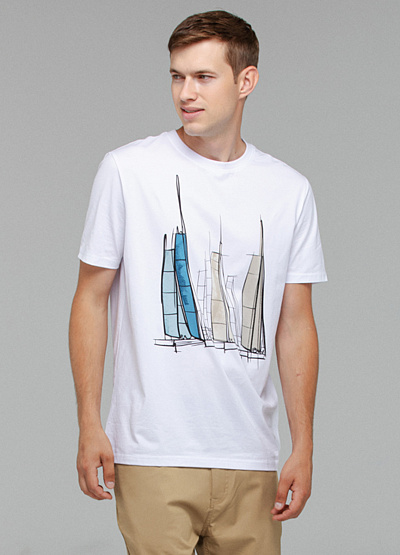 • Мужская футболка от бренда Thomas Graf. Модель выполнена из хлопка. Лицевая сторона декорирована крупным принтом. Короткие рукава. Круглый вырез.