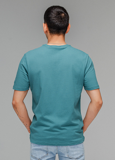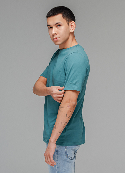 • Мужская футболка зеленого цвета от бренда Thomas Graf. Модель свободного кроя выполнена из хлопка. Короткие рукава. Рукав декорирован логотипом. Круглый вырез.
