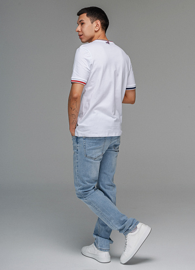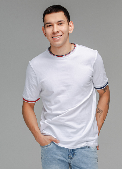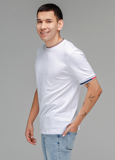 • Мужская футболка белого цвета от бренда Thomas Graf. Модель свободного кроя выполнена из хлопка. Короткие рукава. Контрастная окантовка. Круглый вырез.