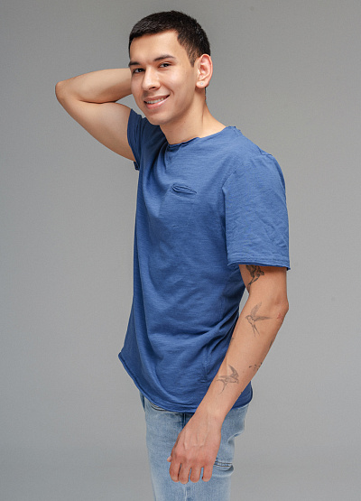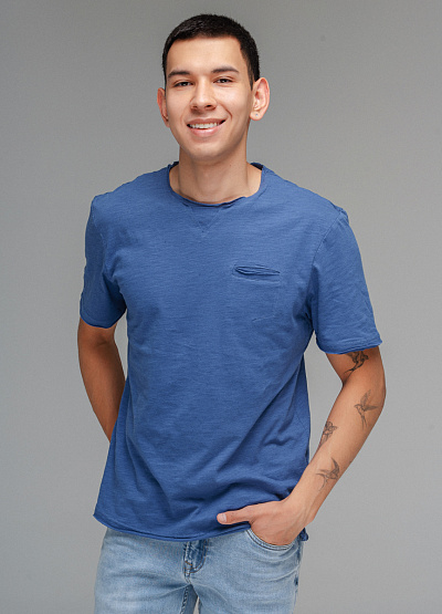 • Мужская футболка голубого цвета от бренда Thomas Graf. Модель свободного кроя выполнена из хлопка. Короткие рукава. Круглый вырез. Карман сбоку.