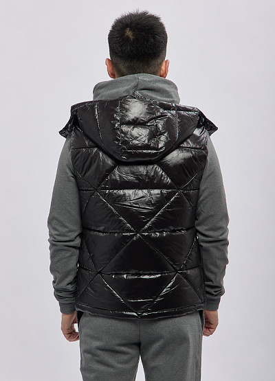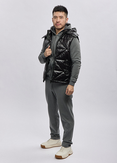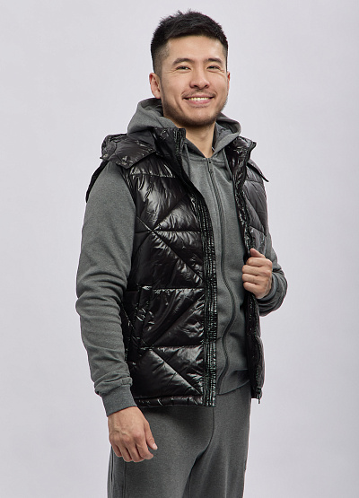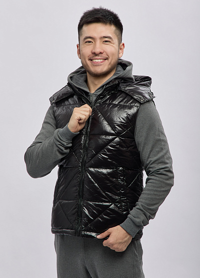 • Мужской утеплённый жилет Duca Daretti в классическом чёрном цвете — практичная и универсальная модель для прохладного сезона. Глянцевая фактура материала придаёт изделию современный вид, а стеганая конструкция обеспечивает надёжную защиту от ветра и влаги. Модель дополнена удобным капюшоном и функциональной молнией, благодаря чему жилетка легко комбинируется с худи, свитшотами и спортивными комплектами.