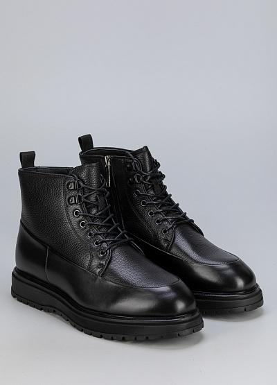 • Мужские зимние ботинки Duca Daretti выполнены из натуральной гладкой и фактурной кожи в универсальном чёрном цвете. Высокий силуэт со шнуровкой обеспечивает плотную фиксацию стопы, а тёплая внутренняя отделка создаёт комфорт даже в сильный холод. Усиленная передняя часть и надёжная протекторная подошва делают пару долговечной и устойчивой к зимним условиям. Отличный вариант для мужчин, ценящих практичность, тепло и современный стиль.
