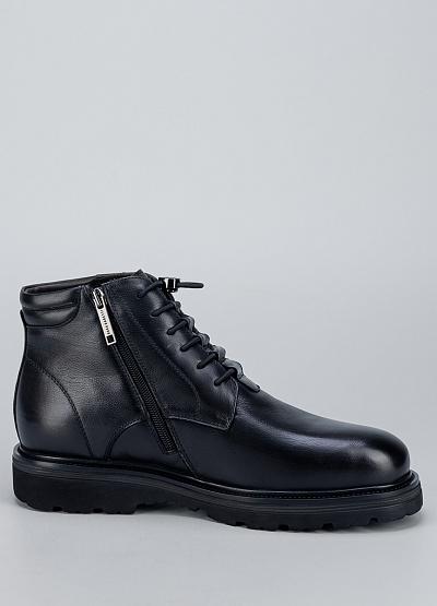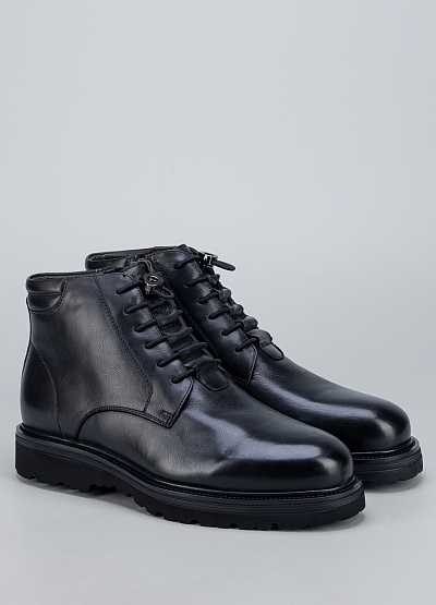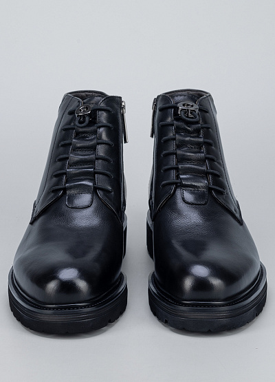 • Мужские кожаные ботинки в лаконичном повседневном стиле выполнены из гладкой натуральной кожи. Модель отличается аккуратным силуэтом и универсальным дизайном, который легко вписывается в городской гардероб. Шнуровка обеспечивает надёжную фиксацию стопы, а утолщённая подошва добавляет устойчивости и комфорта при ходьбе. Практичное решение для прохладного сезона и активной повседневной носки.