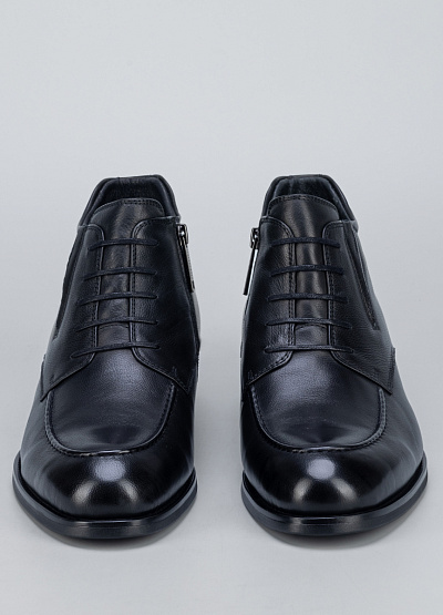 • Мужские кожаные ботинки в сдержанном классическом стиле подойдут для повседневной и офисной носки. Модель выполнена из натуральной кожи с мягкой зернистой фактурой, что обеспечивает аккуратный внешний вид и комфорт при эксплуатации. Шнуровка в сочетании с боковой молнией позволяет удобно надевать обувь и надёжно фиксировать стопу. Лаконичный дизайн и устойчивая подошва делают эти ботинки универсальным решением для городского гардероба в демисезон.