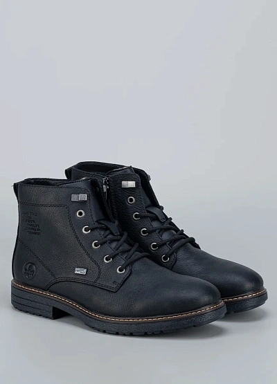 • Мужские зимние ботинки Rieker в классическом черном цвете — универсальный вариант для холодного времени года. Модель сочетает в себе строгость внешнего вида и практичность, обеспечивая тепло и комфорт даже в морозы. Подходят для повседневной носки, офисных образов и активного отдыха.