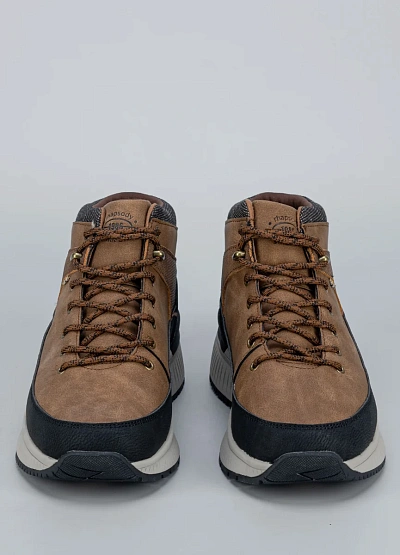 • Мужские кроссовки Phapsody — это сочетание прочности, стиля и комфорта. Модель выполнена в коричневом цвете с контрастной чёрной отделкой и плотной рифлёной подошвой, обеспечивающей отличное сцепление с поверхностью. Удобная шнуровка фиксирует ногу, а мягкий воротник добавляет комфорта при носке.