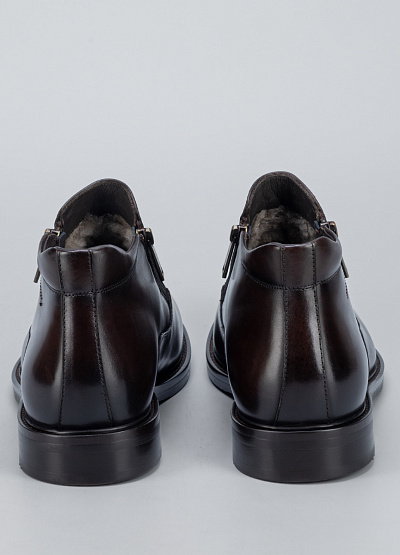 • Мужские кожаные ботинки выполнены в элегантном повседневно-классическом стиле. Гладкая натуральная кожа с благородным тёмно-коричневым оттенком подчёркивает аккуратный силуэт модели. Боковая молния обеспечивает удобство при надевании, а лаконичный дизайн делает эту пару универсальной для городского гардероба. Комфортная посадка и устойчивая подошва подходят для активного дня в прохладный сезон.