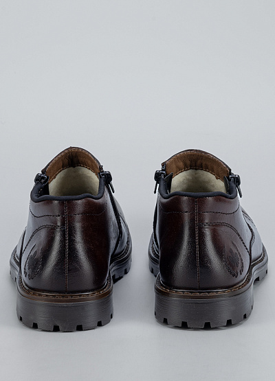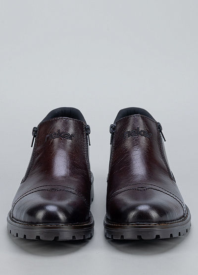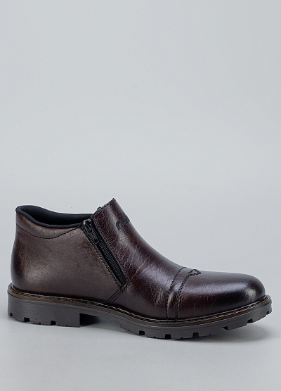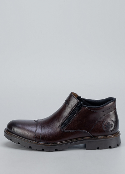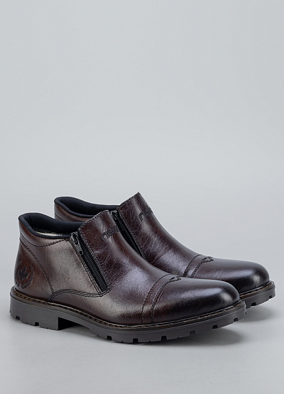 Мужские тёмно-коричневые ботинки Rieker— стильная и практичная модель для прохладного сезона. Натуральная фактура материала с благородным блеском подчёркивает классический характер обуви, а удобная конструкция делает её отличным выбором для ежедневной носки. Боковая молния обеспечивает лёгкость надевания, а прочная подошва с глубоким протектором гарантирует уверенное сцепление даже на скользких поверхностях.