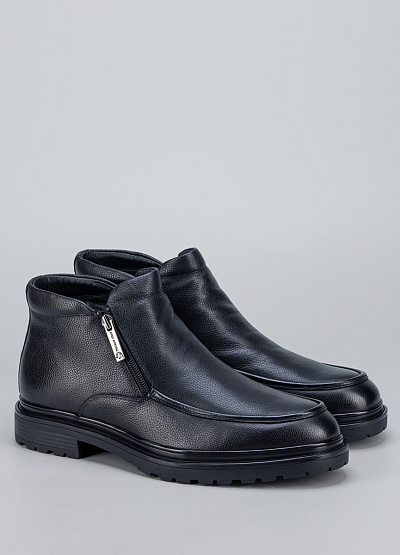• Мужские демисезонные ботинки из натуральной кожи в классическом повседневном стиле. Модель отличается аккуратным округлым носком и лаконичным дизайном без лишних деталей. Боковая молния обеспечивает удобство при надевании, а плотная подошва с выраженным протектором повышает устойчивость и комфорт при ходьбе. Универсальный вариант для городского ритма и ежедневной носки в межсезонье.