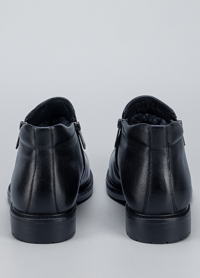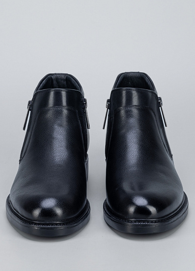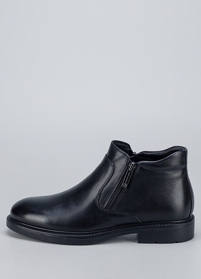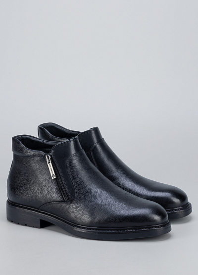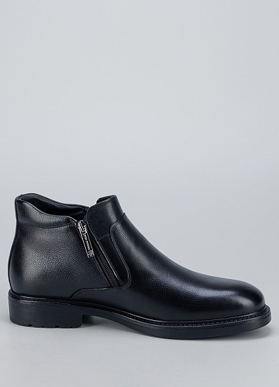 • Мужские кожаные ботинки в классическом чёрном цвете — универсальная модель для повседневного и делового гардероба. Выполнены из натуральной зернистой кожи, которая хорошо держит форму и устойчива к износу. Лаконичный дизайн с аккуратным округлым носком делает модель сдержанной и элегантной. Боковая молния обеспечивает удобство при надевании, а устойчивая подошва гарантирует комфорт при ходьбе в течение всего дня.