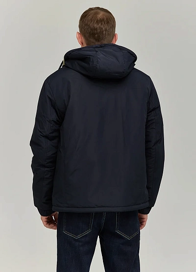 • Мужская чёрная куртка Black Vinyl с капюшоном. Практичная и универсальная модель для холодного сезона: лаконичный дизайн и удобный крой делают её базовой в гардеробе.