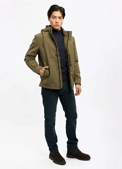 • Мужская демисезонная куртка в универсальном оливковом оттенке — функциональная модель для прохладной и ветреной погоды. Прямой крой обеспечивает удобную посадку, не сковывая движений, а плотный материал хорошо защищает от ветра и лёгких осадков. Куртка оснащена капюшоном и несколькими карманами, что делает её практичным выбором для повседневной носки в городском ритме.