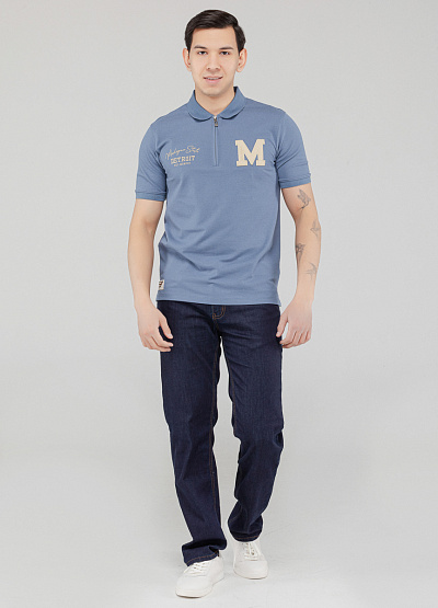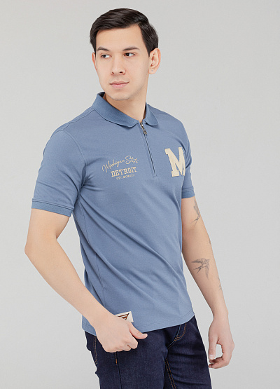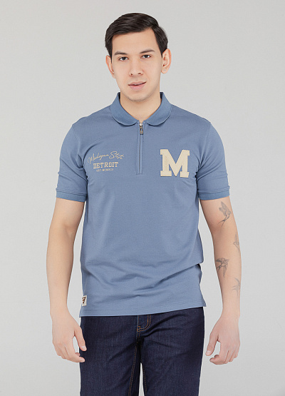 • Мужское поло в голубом оттенке выполнено из приятного к телу хлопкового трикотажа. Декоративная вышивка и объёмная буква "M" придают изделию спортивный характер и подчёркивают индивидуальность стиля. Модель с классическим отложным воротником и застёжкой на молнию удобно сидит по фигуре и остаётся актуальной вне зависимости от сезона. Идеально подойдёт для повседневных образов и прогулок в городском ритме.