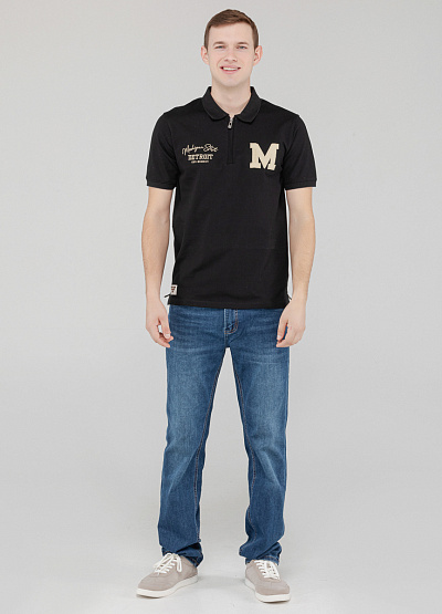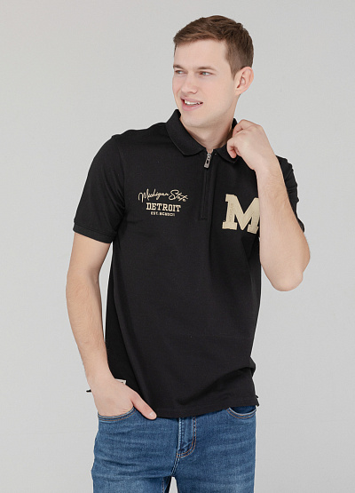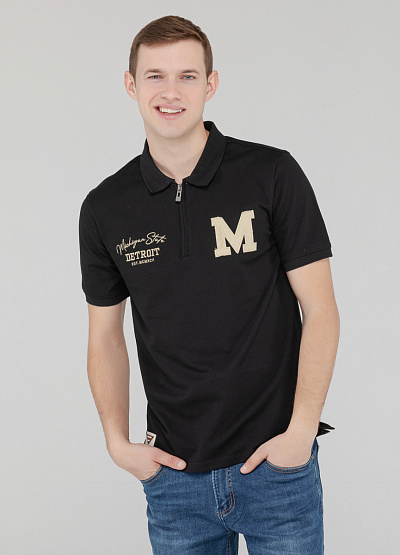 • Мужское поло в черном оттенке выполнено из приятного к телу хлопкового трикотажа. Декоративная вышивка и объёмная буква "M" придают изделию спортивный характер и подчёркивают индивидуальность стиля. Модель с классическим отложным воротником и застёжкой на молнию удобно сидит по фигуре и остаётся актуальной вне зависимости от сезона. Идеально подойдёт для повседневных образов и прогулок в городском ритме.