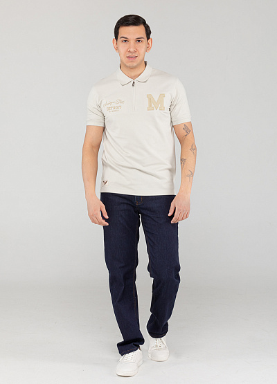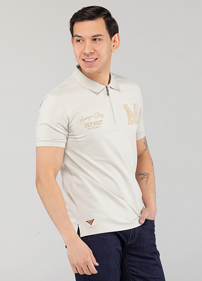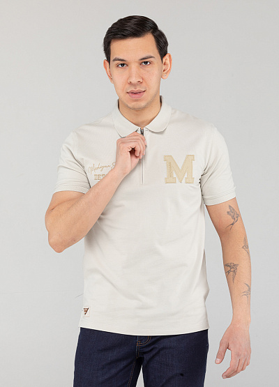 • Мужское поло в бежевом оттенке выполнено из приятного к телу хлопкового трикотажа. Декоративная вышивка и объёмная буква "M" придают изделию спортивный характер и подчёркивают индивидуальность стиля. Модель с классическим отложным воротником и застёжкой на молнию удобно сидит по фигуре и остаётся актуальной вне зависимости от сезона. Идеально подойдёт для повседневных образов и прогулок в городском ритме.