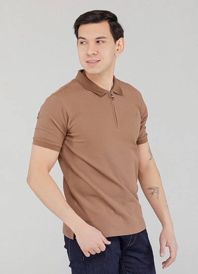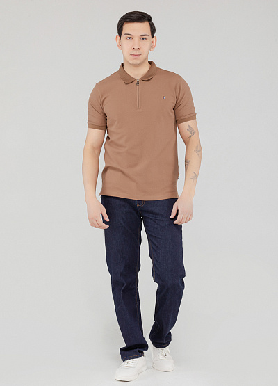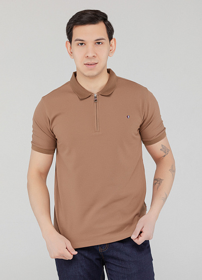 • Коричневое поло с воротником и молнией, заменяющей традиционную застёжку на пуговицах. Лаконичный дизайн дополнен небольшим логотипом на груди, создавая образ сдержанного стиля. Мягкий хлопковый трикотаж приятен к телу и обеспечивает комфорт в течение всего дня. Модель легко сочетается с джинсами, брюками или шортами.