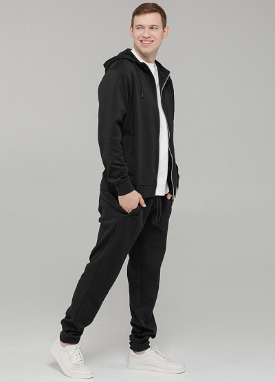• Базовые спортивные брюки в чёрном цвете — это универсальный выбор для активного образа жизни и повседневного комфорта. Модель выполнена из мягкого трикотажа, приятного к телу и не сковывающего движений. Эластичный пояс со шнурком обеспечивает комфортную посадку, а манжеты по низу создают аккуратный силуэт. Лаконичный дизайн без лишних деталей делает эти брюки отличным решением как для спорта, так и для домашнего отдыха, прогулок или поездок.