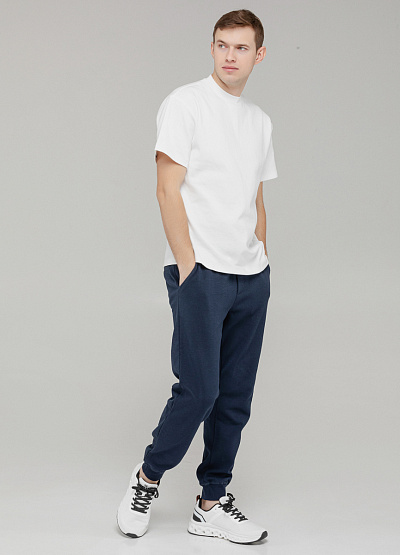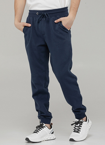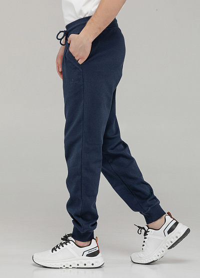 • Универсальные мужские спортивные брюки синего цвета, выполненные из мягкого хлопкового материала с добавлением эластана. Облегающий крой с манжетами на резинке подчёркивает силуэт и при этом обеспечивает полную свободу движений. Пояс на резинке с регулируемым шнурком, глубокие боковые карманы и минималистичный логотип на бедре делают эту модель идеальной как для активного образа жизни, так и для повседневного комфорта.
