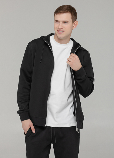 • Практичная и универсальная толстовка на молнии — must-have для мужского гардероба. Классический чёрный цвет, лаконичный дизайн и удобный крой делают эту модель идеальной как для активных прогулок, так и для повседневной носки. Толстовка выполнена из мягкого трикотажа, хорошо держит форму и приятна к телу. Капюшон со шнурком и глубокие боковые карманы добавляют функциональности и стиля. Благодаря молнии по всей длине, легко надевается и снимается.