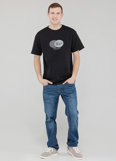 • Современная мужская футболка прямого кроя выполнена из плотного хлопкового трикотажа. Глубокий чёрный цвет и стильный графический принт с логотипом North Gear делают эту модель ярким элементом повседневного гардероба. Футболка имеет классический круглый вырез и короткие рукава, обеспечивая комфорт и свободу движений. Идеально подойдёт для городского образа, прогулок или отдыха в стиле casual.