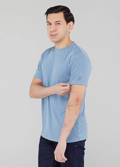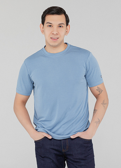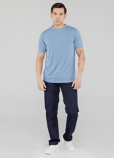 • Универсальная мужская футболка в голубом цвете — идеальный выбор для базового гардероба. Классический крой, круглый вырез и короткие рукава делают футболку удобной и практичной. Маленький логотип на рукаве добавляет ненавязчивый акцент.
