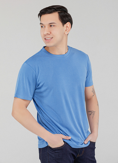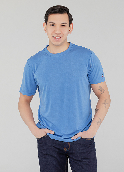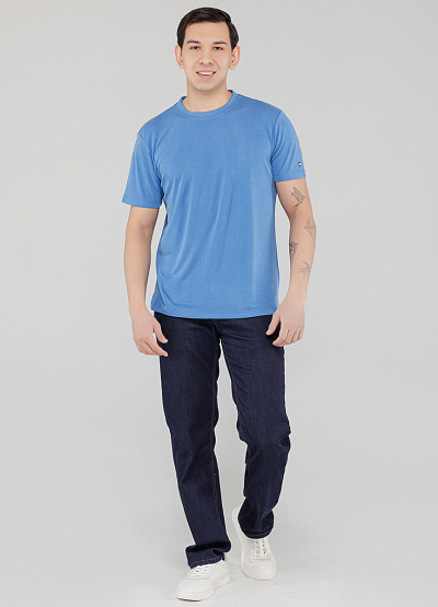 • Универсальная мужская футболка в голубом цвете — идеальный выбор для базового гардероба. Классический крой, круглый вырез и короткие рукава делают футболку удобной и практичной. Маленький логотип на рукаве добавляет ненавязчивый акцент.