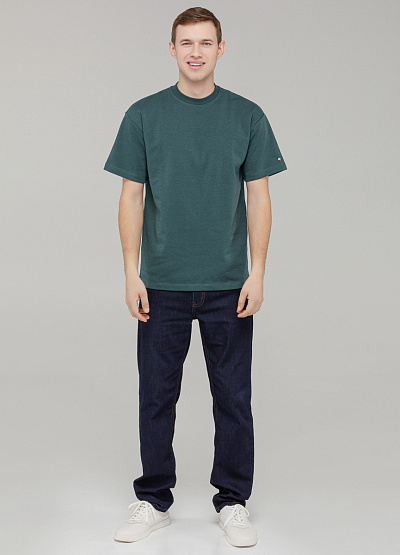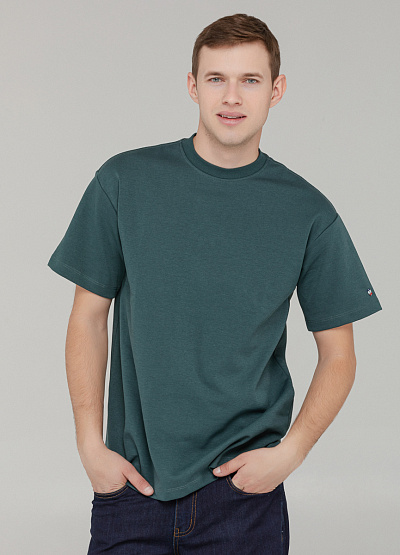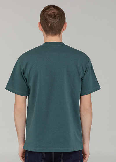 • Базовая футболка прямого кроя выполнена в зеленом оттенке. Модель изготовлена из плотного трикотажа с высоким содержанием хлопка, что обеспечивает комфортную посадку и долговечность в носке. Минималистичный дизайн дополнен маленьким логотипом на рукаве, что делает эту футболку стильной и сдержанной одновременно. Отлично подойдёт для повседневных образов в городском стиле.