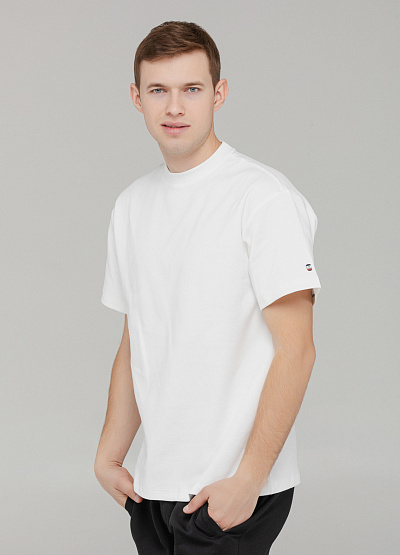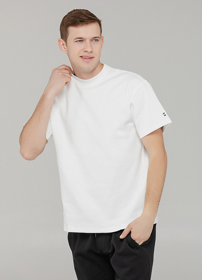 • Базовая футболка прямого кроя выполнена в универсальном белом оттенке. Модель изготовлена из плотного трикотажа с высоким содержанием хлопка, что обеспечивает комфортную посадку и долговечность в носке. Минималистичный дизайн дополнен маленьким логотипом на рукаве, что делает эту футболку стильной и сдержанной одновременно. Отлично подойдёт для повседневных образов в городском стиле.