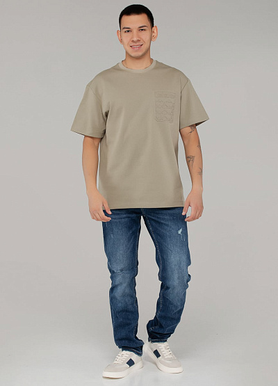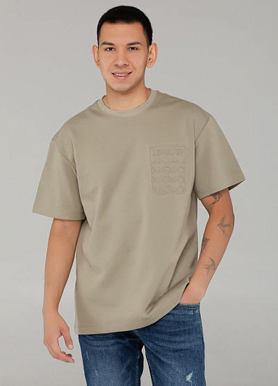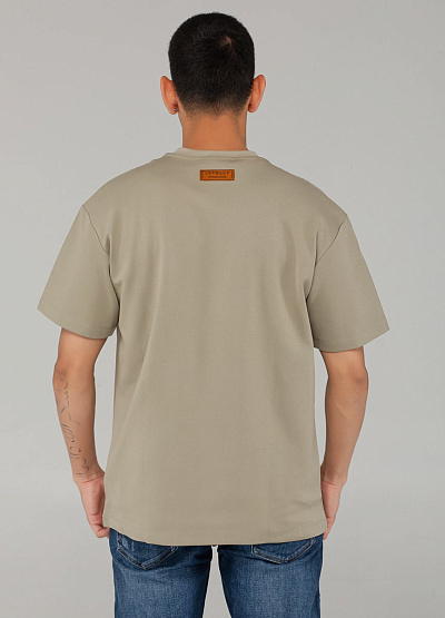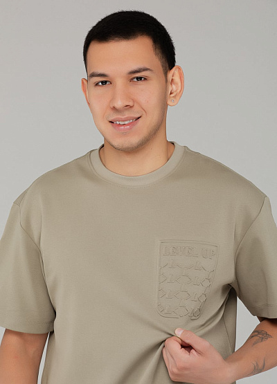 • Мужская футболка цвета бежевый хаки с объёмным принтом — сдержанный и современный выбор для городского гардероба. Лёгкий акцент в виде надписи "LEVEL UP" придаёт образу индивидуальность.